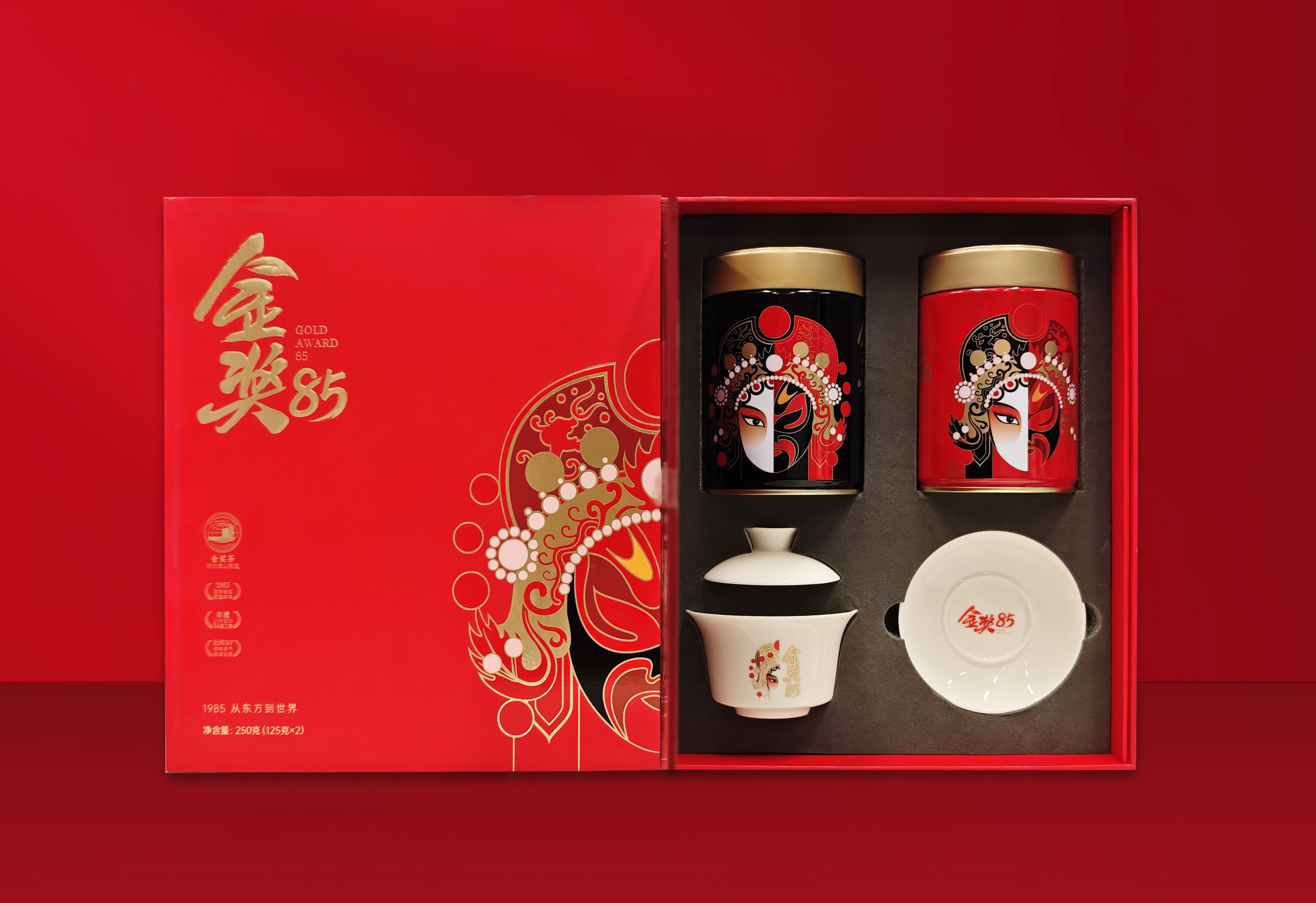 净含量:金奖85黑红罐125g*2、白瓷盖碗*1